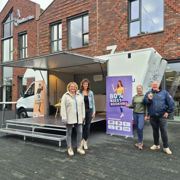 De Gezonde Huiskamer is een open camper die op schoolpleinen parkeert. Het is dus letterlijk een huiskamer op wielen waar jongeren naar binnen kunnen stappen voor een oordeelvrij gesprek. ‘Dit is een waardevolle aanvulling op traditionele campagnes om effect te behalen; juist dit open en oordeelvrije gesprek maakt het verschil,’ zegt ambulant hulpverlener Tom Soldaat. ‘We luisteren naar jongeren en nemen hun vragen en ideeën serieus.’ In deze gesprekken krijgen jongeren inzicht hoe ze omgaan met stress en emoties. Ook kunnen ze op interactieve wijze ervaren wat de lichamelijke en financiële voordelen zijn van een rook- en vapevrij leven.